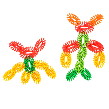 Juego de ensamble con piezas de plástico flexible que se unen entre sí para crear...