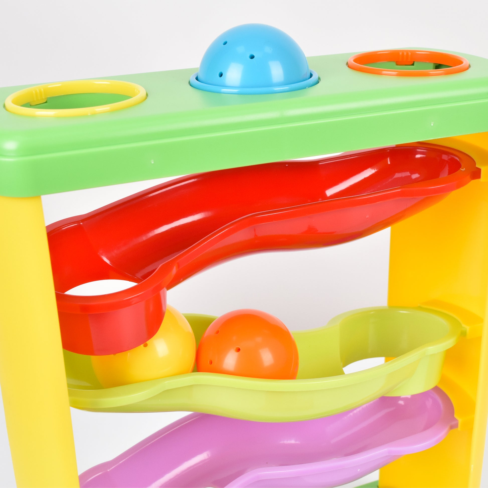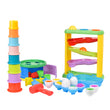 ¡Diversión y aprendizaje en un solo juego! Este colorido set didáctico estimula la coordinación, la motricidad fina y el reconocimiento de colores y formas en los más pequeños. Incluye diferentes actividades como torre apilable, martillo con formas, rampa de pelotas y huevos encajables, ideales para desarrollar la lógica y la curiosidad de manera segura.