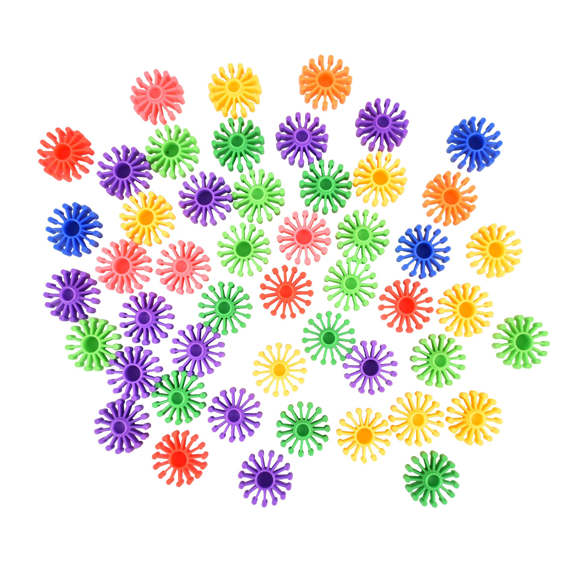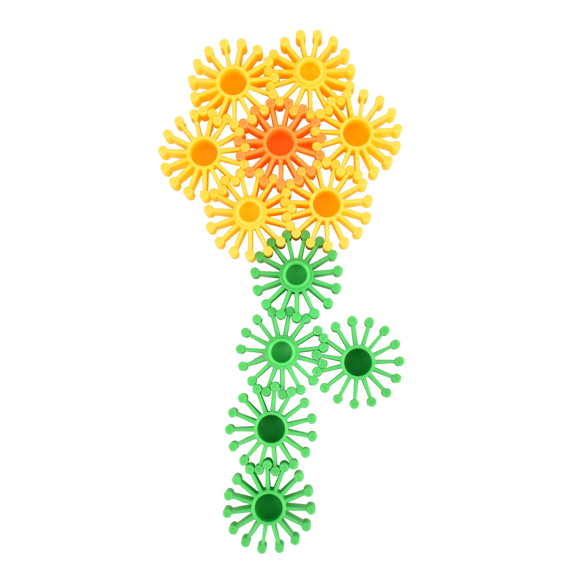 Juego de ensamble con piezas de plástico rígido que se unen entre sí con un "clic" para formar distintas figuras.