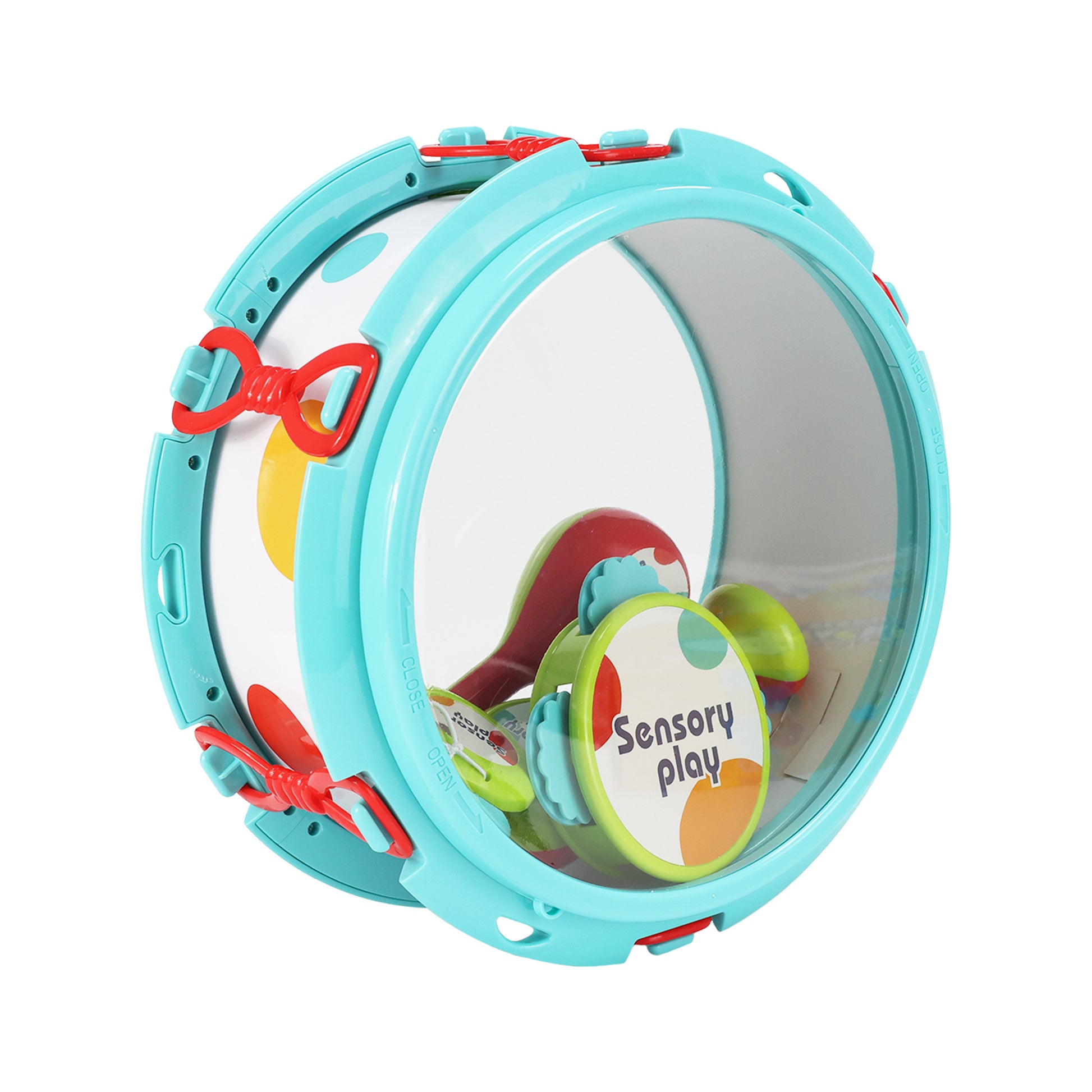 CONTENIDO |1 tambor, 2 palillos, pandero, 2 castañuelas, 2 maracas. Peso: 0.46 kg Edad: 18M+