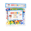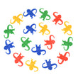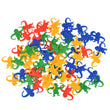 Juego de ensamble con piezas de plástico en forma de changuitos que se unen entre sí para formar cadenas.