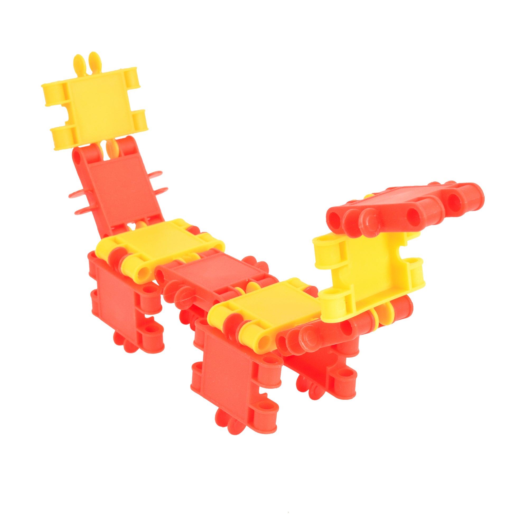 Juego de ensamble con piezas de plástico rígido que simulan una pinza y se unen entre sí con un "clic" para formar cadenas. Crea los diseños que tu imaginación te permita. Desarrolla las habilidades estratégicas, la coordinación ojo-mano, la psicomotricidad fina y la imaginación.