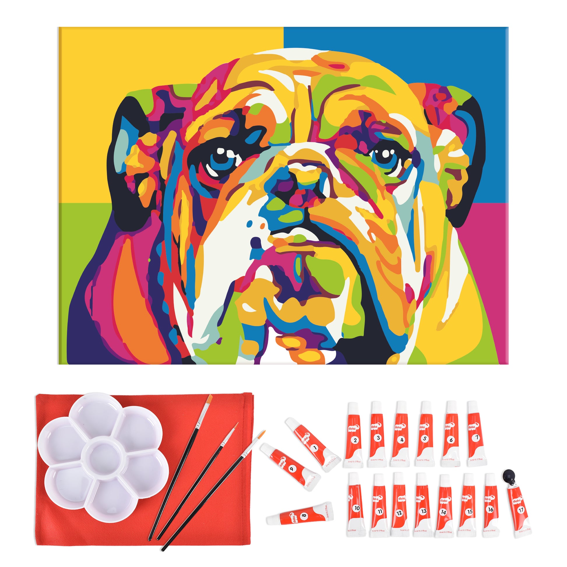 Pinta por Número - Bulldog Multicolor 30x40