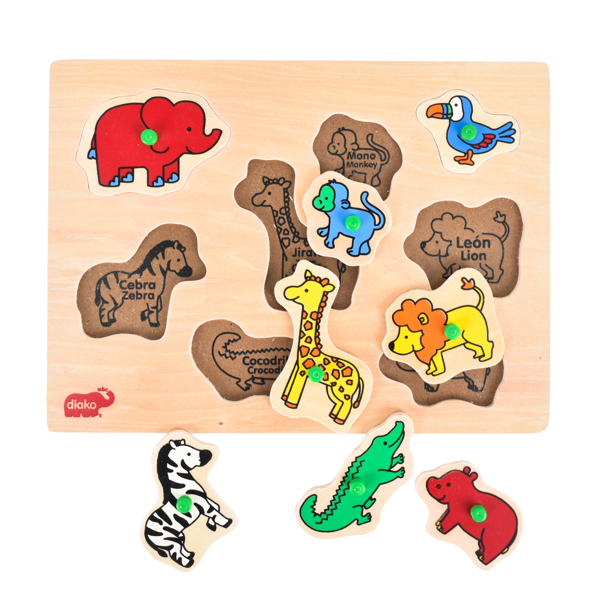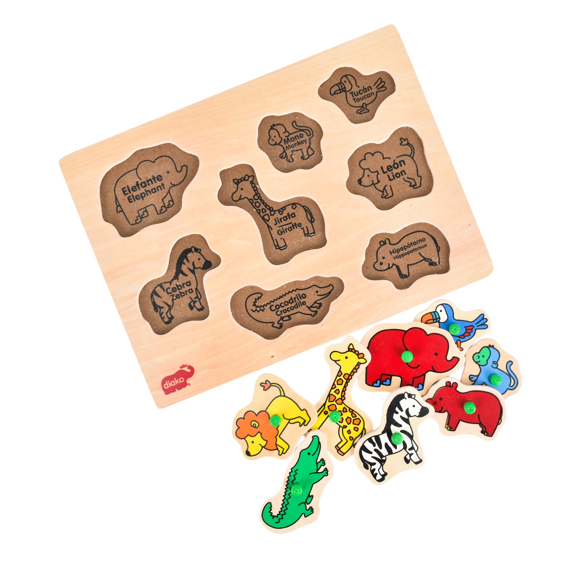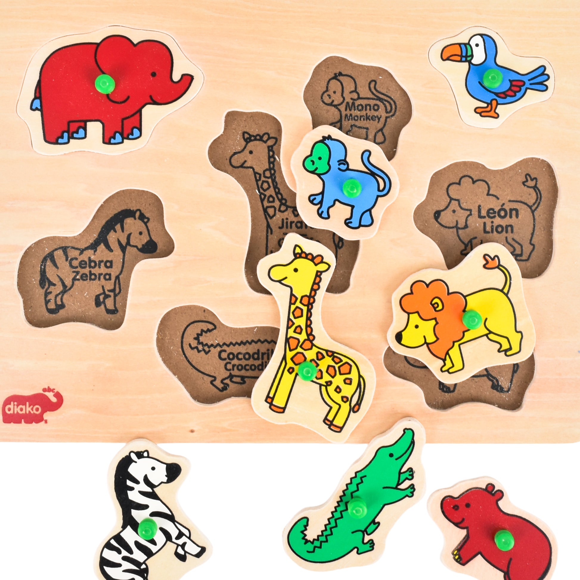 DESARROLLO | Nuestro rompecabezas ayuda a mejorar y fortalecer las habilidades motoras finas, estimular el desarrollo de la coordinación ojo-mano, lenguaje y la imaginación además de aprender a identificar los diferentes animales con sus divertidos colores y sus nombres en español - inglés.
